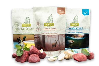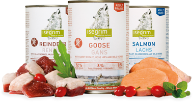 isegrim® is a full-nutrition dog food range containing the best nature has to offer. Inspired by the eating habits of the wolf, it consists of a high proportion of fresh meat and lots of vegetables combined with berries and wild herbs; high quality ingredients with invigorating nutrients, vitamins and oils that are suitable for the dog’s metabolism and immune system. The high-quality components used for isegrim® emphasize the natural feed that dogs love. A feeding concept that takes dogs back to their roots and is attuned to the instincts of their ancestors, for an active, species-appropriate life. isegrim® – wild as nature!